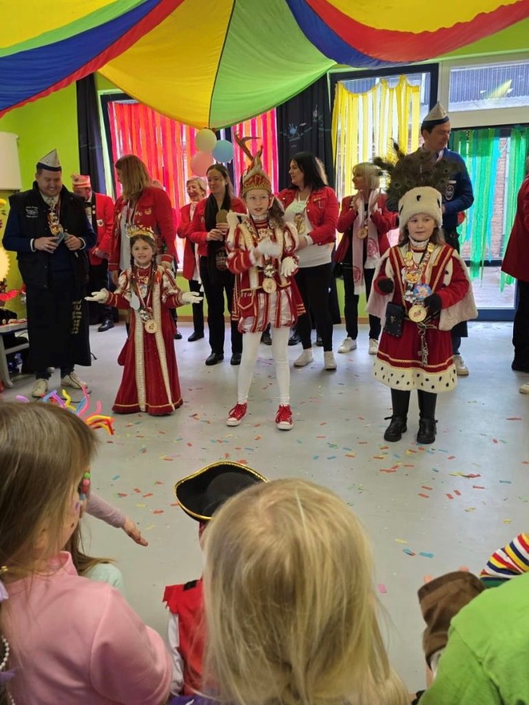 Am Ende des abwechslungsreichen Karnevalsfests verabredeten sich die Kinder, an Rosenmontag den Prinzen und dem Dreigestirn lautstark „Kamelle“ zuzurufen.
