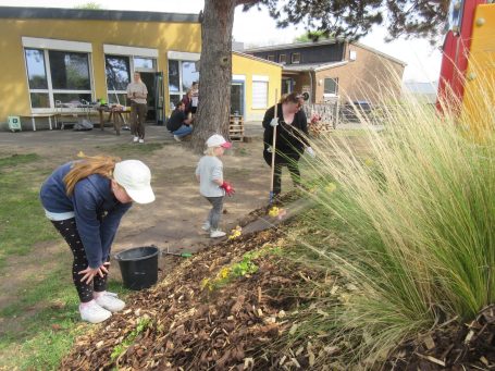 Im April lud der Elternrat alle Familien zum großen Frühjahrsputz in den Kindergarten ein. An einem sonnigen Freitagnachmittag trafen sich viele große und kleine Freunde ausgestattet mit Spaten, Harken und Schaufeln auf dem großen Außengelände. Hier wartete einiges an Arbeit auf die fleißigen Helfer und Helferinnen.