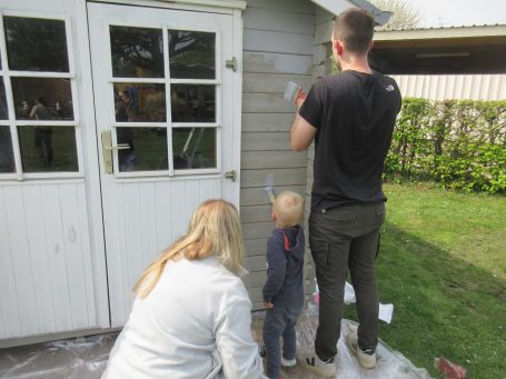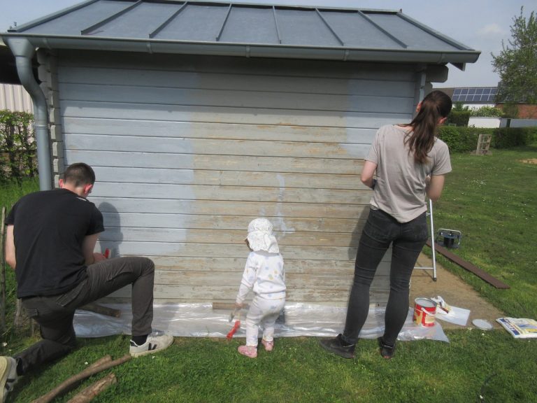 Während einige Eltern und Kinder dem Forscherhaus einen neuen Anstrich verpassten, gingen andere Helfer im Bachlauf und in den Beeten auf erfolgreiche Unkrautjagd.