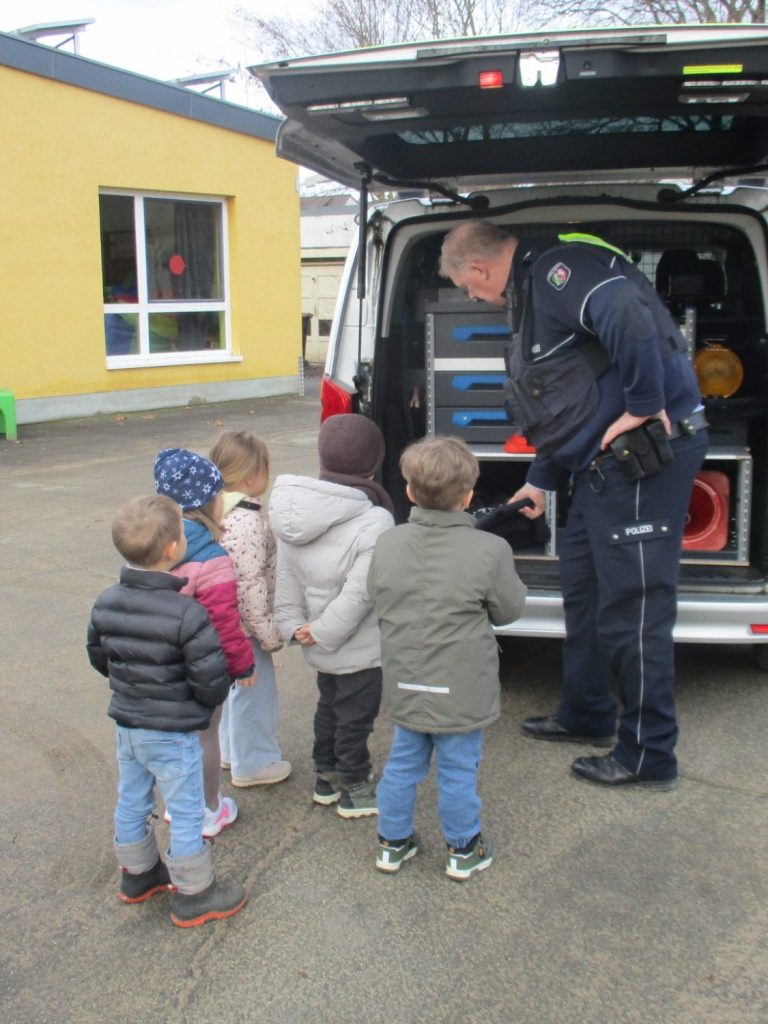 Auch die verschiedenen Fahrzeuge der Polizei, ein Bewegungsparcours unter dem Motto „Fit wie die Polizei“, ein Medienangebot sowie das Kennenlernen eines Polizisten und dessen Streifenwagen waren Bestandteile des Projektes. Besonders im Rollenspiel hatten die Kinder viel Spaß daran, selbst in die Rolle von Polizistinnen und Polizisten zu schlüpfen.