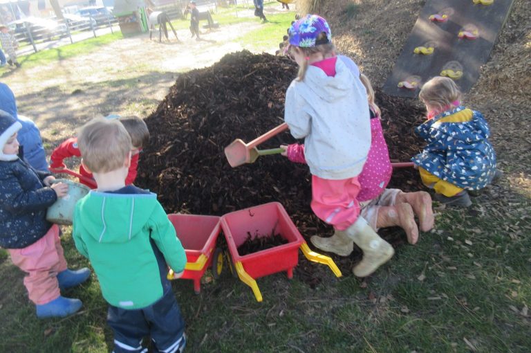 Draußen wurde sich direkt in die Arbeit gestürzt und mit Schubkarren und Schaufeln fleißig gearbeitet. Bei gemeinsamen Spaziergängen gingen die kleinen Freunde auf die Suche nach den ersten Frühlingsboten. Die kleinen Knospen an den Sträuchern und die ersten Krokusse wurden schnell entdeckt!